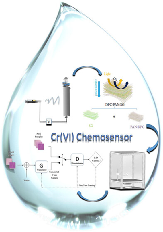 针对饮用水中可能存在的重金属Cr(VI)污染,团队制作出一种优化后更加稳定、更加灵敏的Cr(VI)比色传感器,再结合小样本深度学习模型,可以将整个测试时间缩短到3分钟,不需要进行富集处理,对饮用水中Cr(VI)的检出限也能满足USEPA、WHO及中国的现场检测要求。尤其是与智能手机APP数据联动采集后,已经可以成功应用在天然水中Cr(VI)的可视化检测。进一步和区块链技术结合,有望实现数据端到端的安全连接和管理,还可以建立Cr(VI)现场水环境监测系统。
