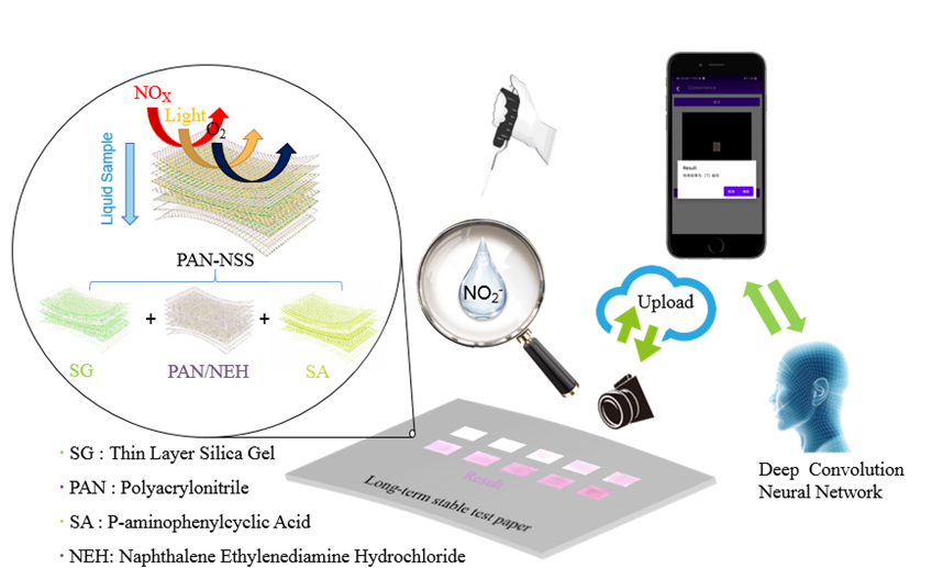 亚硝酸盐是日常食品中最常见的致癌物之一,亚硝酸盐在食物中含量的检测对食品安全具有重要意义。该团队利用静电纺丝技术制备出有效期长达30天以上的、可批量生产的试纸产品,与机器深度学习和智能手机APP相结合,提出了一种快速、便携、可视化、可现场进行亚硝酸盐检测的平台。团队成员表示,如果这个平台能够实现应用与推广,无论是食品安全监督管理部门、卫生行政部门还是普通家庭,都可以用它对食物样品进行简单方便的亚硝酸盐含量检测。