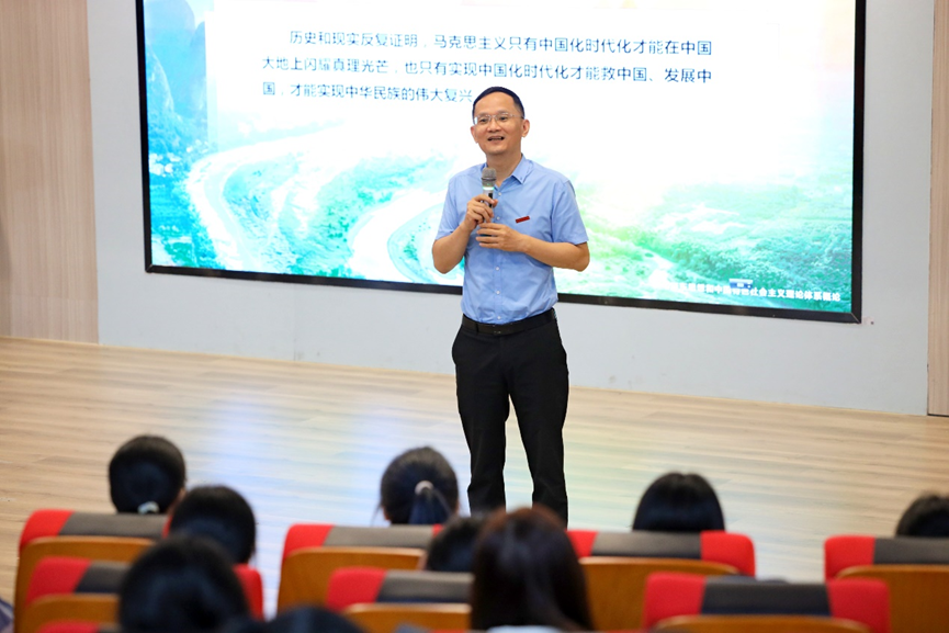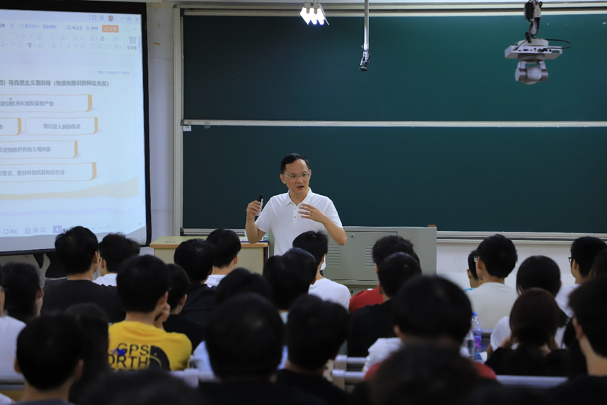 开学第一天,他来到《毛泽东思想和中国特色社会主义理论体系概论》的课堂上,与同学们分享闽南师大的“红色记忆”。他告诉同学们,马克思主义之“甜”在于它是科学的理论,指引着人们认识世界、改造世界。作为汉语言文学专业的师范生,要认真领悟真理的“甜味”,坚持把马克思主义基本原理同中华优秀传统文化相结合,学习贯彻好全国教育大会精神,涵养教育家精神,主动承担起培养下一代的重任,不断推动马克思主义中国化时代化。