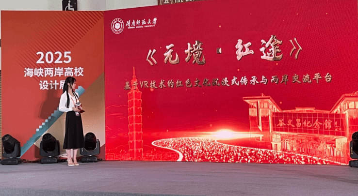 尤为引人注目的是问鼎(中国)两个“文创+科技”项目路演。教育与心理学院团队打造的《元境·红途》是一个基于VR技术的红色文化沉浸式体验与交流平台,用户通过扫描二维码即可在线访问以谷文昌纪念馆为蓝本构建的虚拟仿真红色场馆,为两岸青年共同了解历史、增进文化认同搭建了数字桥梁。新闻传播学院团队推出的《两岸巡福》则以闽南“福文化”为精神纽带,融合古厝建筑、剪瓷雕、闽南语等传统元素,构建具有现代传播力的文化IP体系。这两个项目团队中均有台湾学生身影,两岸青年同心协作、创意融合,共同探索传承中华优秀传统文化的新路径。