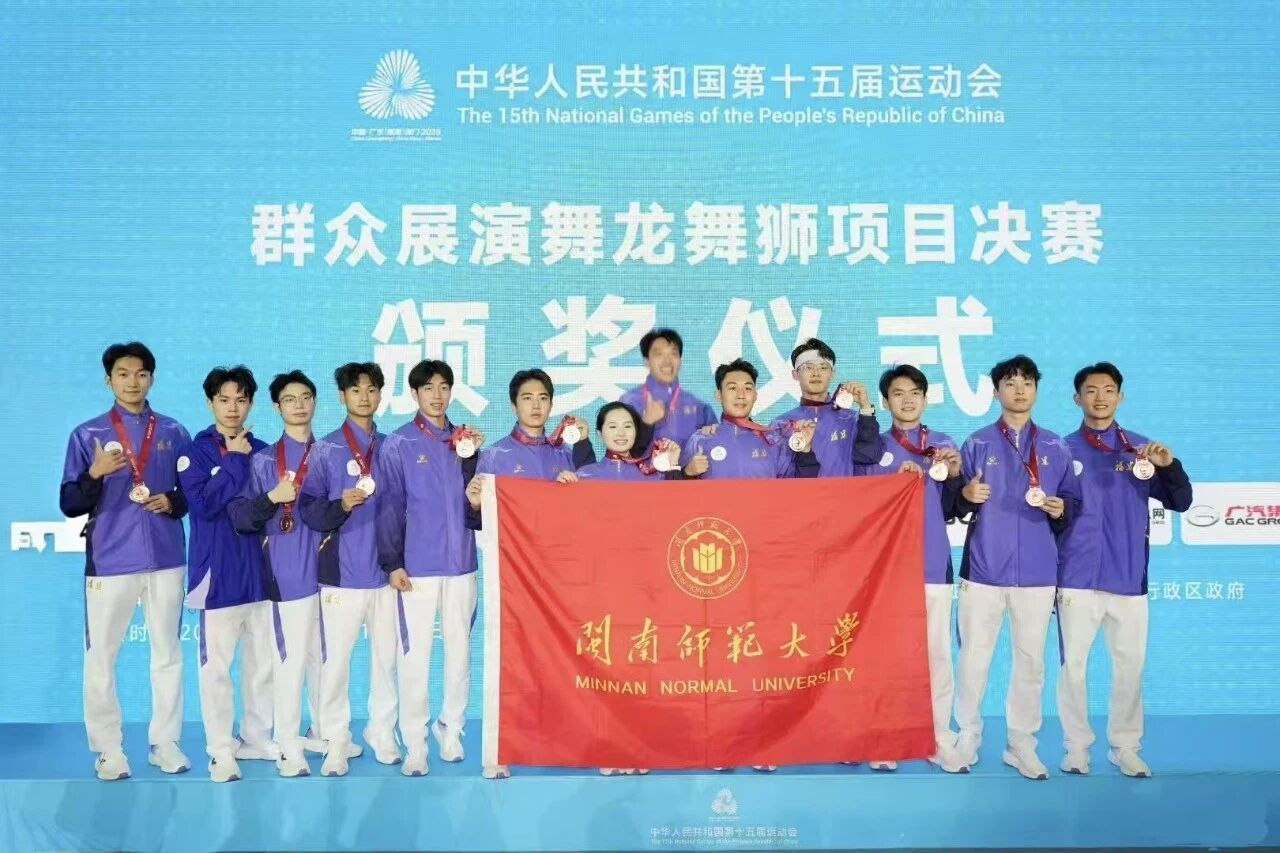 比赛现场,从动作编排的创意构思,到龙形姿态的灵动呈现,再到团队配合的默契衔接,每一处细节都体现出队伍对项目的深刻理解和扎实功底。最终,问鼎(中国)龙狮队在“舞龙自选”项目中勇夺全运会铜牌,实现了学校在全运会群众赛事中“零的突破”。