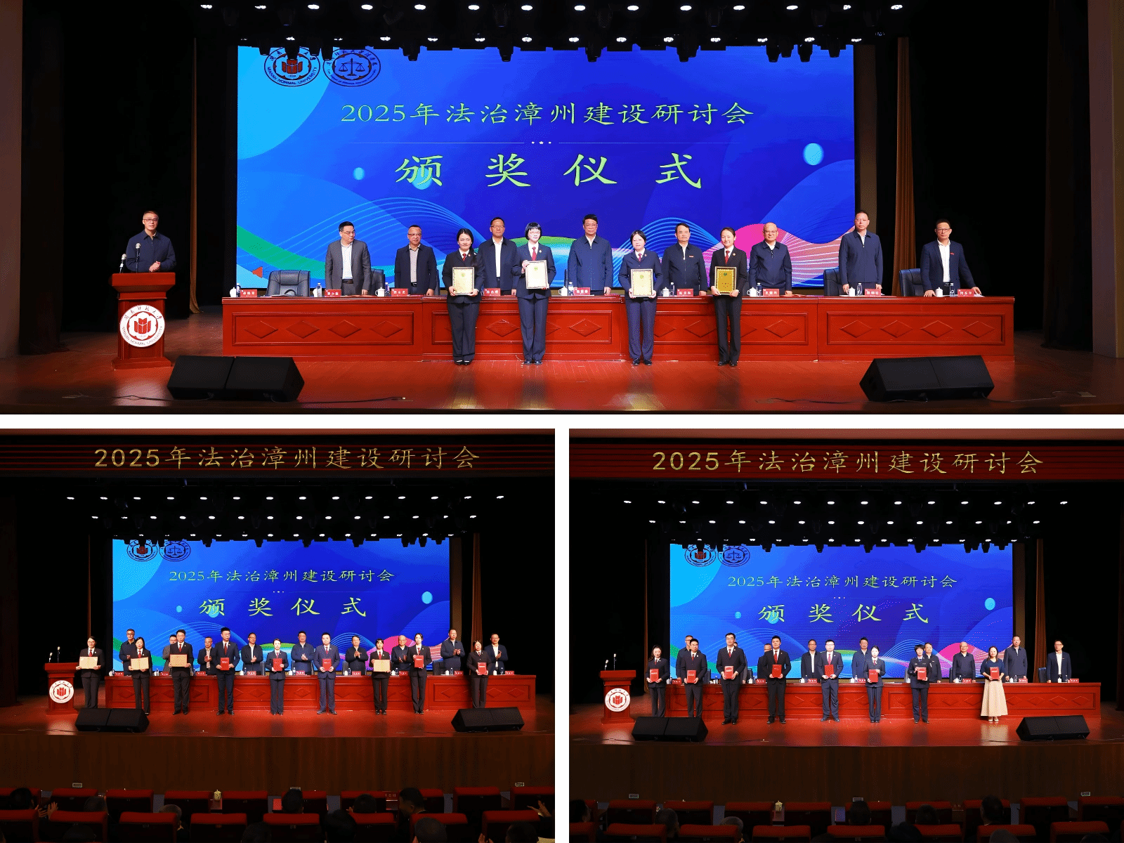 会上公布2025年法治实践研究突出贡献者名单,通报表扬2025年“法治漳州”建设研讨会征文获奖论文及作者。与会领导为获奖人员颁奖。