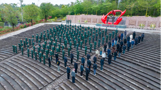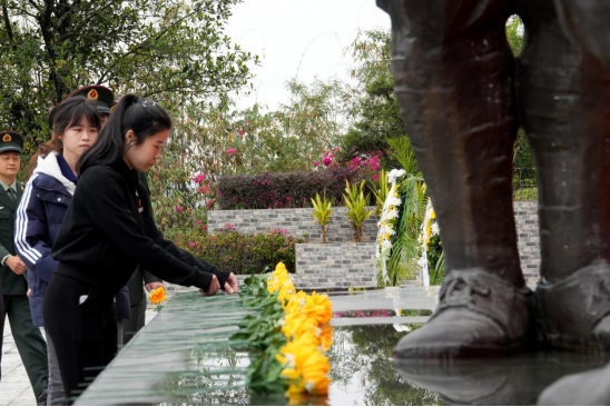 在雄壮庄严的国歌声中,全体师生与在营官兵代表在烈士名录墙前整齐列队,向革命英烈默哀致敬。林致远和廖志丹代表师生向烈士敬献花圈并整理挽联。全体师生面向纪念碑行三鞠躬礼,向革命英烈表达悼念和敬意,并依次缓步向前瞻仰烈士名录、敬献鲜花。大家驻足凝望,在铭记历史中寄托哀思,厚植爱国情怀;在崇尚英雄中赓续红色血脉,汲取奋进力量。