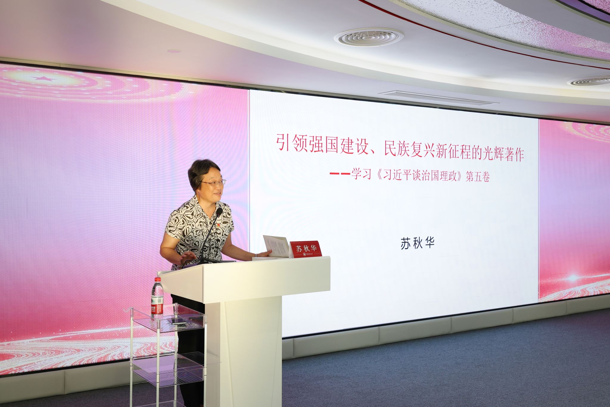 活动邀请厦门市委党校原副校长、二级巡视员苏秋华教授作题为《引领强国建设,民族复兴新征程的光辉著作——学习〈习近平谈治国理政〉第五卷》的辅导讲座。讲座系统阐述了《习近平谈治国理政》第五卷的内容框架、时代价值、核心内容和主题主线,深入解读“两个结合”的根本途径和深厚根基,为与会人员提供了权威、精准的学理支撑。