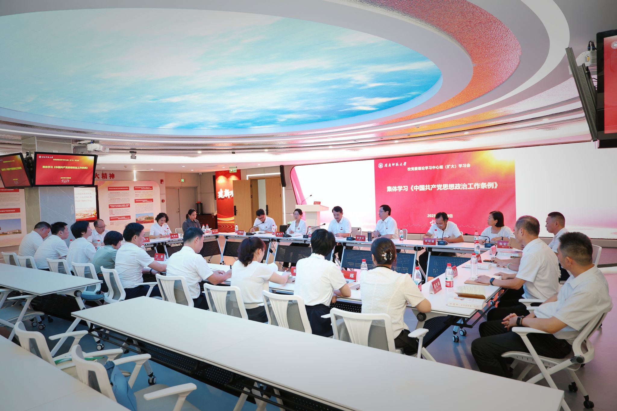 在集体研学环节,与会人员集体学习了《中国共产党思想政治工作条例》及习近平总书记在中共中央政治局第二十二次集体学习时的重要讲话精神,并围绕“学好用好《习近平谈治国理政》第五卷,奋力谱写学校高质量发展新篇章”开展深入研讨。与会人员在沉浸式、互动式、启发式的学习体验中,不断碰撞思想、深化认识,明确了将党的创新理论转化为推动学校“双一流”建设的具体思路和行动方向。