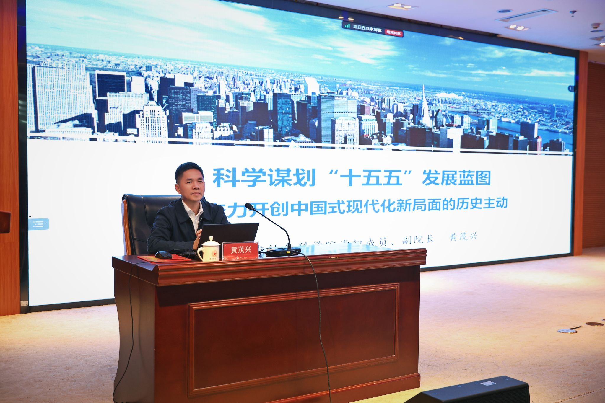 报告会上,黄茂兴围绕党的二十届四中全会精神,聚焦五年规划制度的战略地位、“十五五”时期的历史方位与使命任务、科学谋划发展蓝图的总体部署、推进中国式现代化的信心底气,以及必须遵循的重大原则与实践路径,作了系统阐释。他全面分析了我国在制度、市场、产业、人才等方面的显著优势,指出面对复杂多变的国际国内形势,必须始终坚持党的全面领导,坚持以人民为中心,坚持高质量发展,坚持全面深化改革,坚持有效市场和有为政府相结合,坚持统筹发展和安全,不断推动中国式现代化取得新进展、开创新局面。