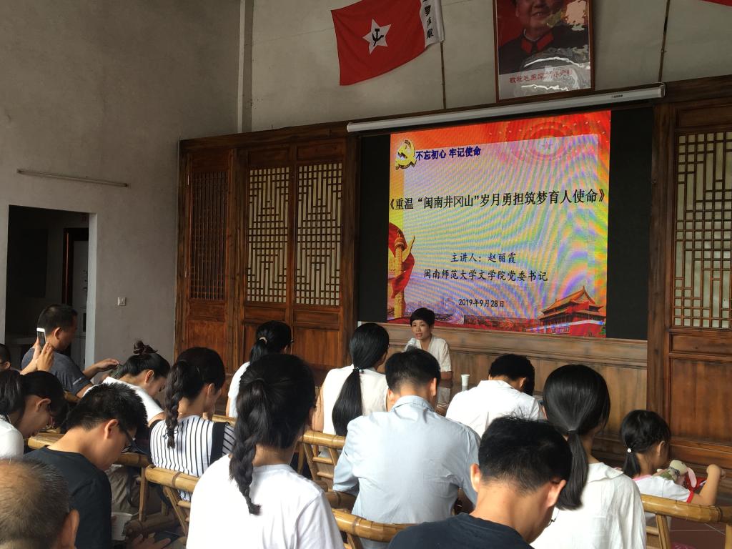 近日,文学院党委组织4个教工党支部前往漳浦石榴镇车本村开展“不忘初心、牢记使命”主题党日活动。活动设置专题党课、红诗朗诵会、红色故事讲述人分享会、合唱快闪等环节。