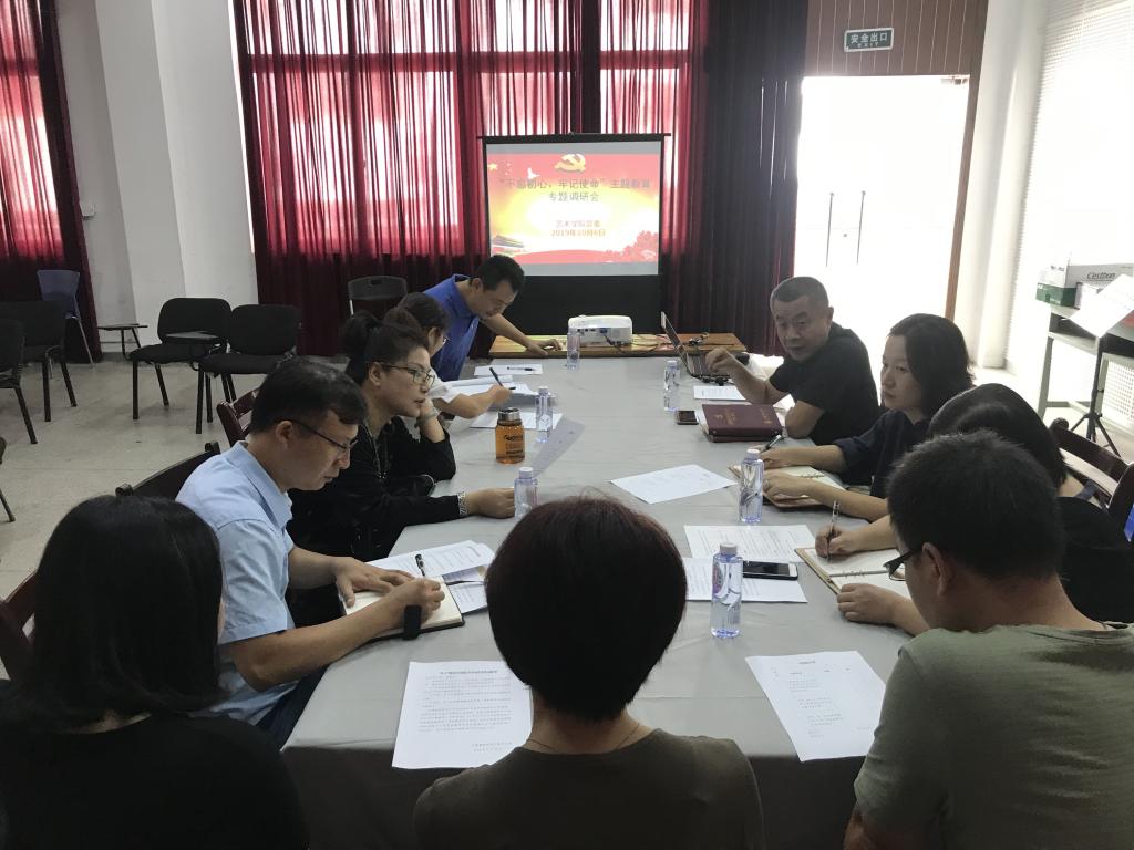 10月8日上午,艺术学院召开“不忘初心、牢记使命”主题教育专题调研座谈会,围绕学院主题教育开展情况,重点查找问题,破解工作难题,促进主题教育取得实效。学院党政领导、系主任、各科室负责人及各教研室主任参加,会议由学院党委书记汤跃滨主持。