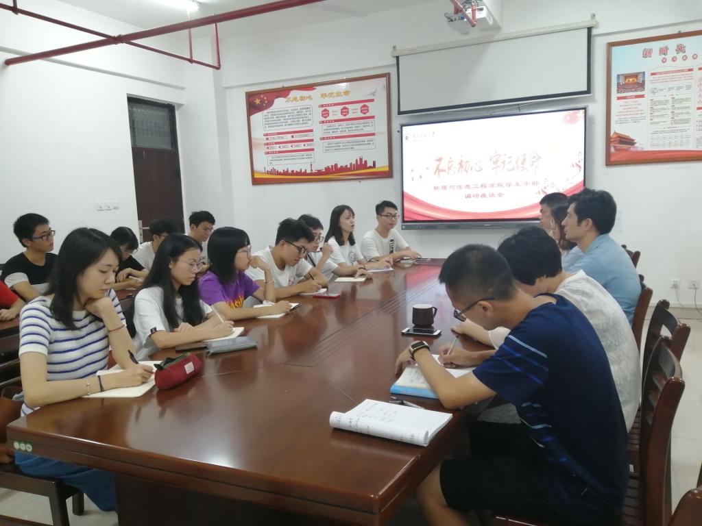 此外,为加强物信学院学生干部队伍建设,了解学生干部对学院教育教学、管理服务、学生综合素质培养等方面的意见和建议,10月14日,学院召开了“不忘初心,牢记使命”主题教育学生干部调研座谈会。各学生组织主要学生干部集中探讨了学生组织存在的各类问题,就如何强化思想引领作用、改进学风建设、加强学生干部作风建设等方面提出了意见和建议。