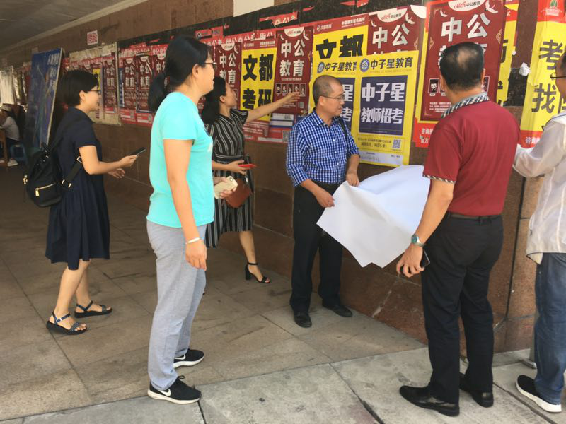 10月18日,研究生处党支部全体党员在校园内开展了“清理考研小广告”志愿服务活动。清理活动从达理学生公寓起至东门结束,老师们认真仔细搜寻,特别是针对各类考研辅导广告,一发现均给予撕毁和清理。
